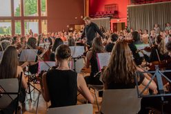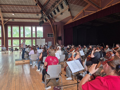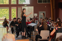 Jeudi 21 août les musiciens élèves du stage d'ensemble à cordes ont proposé une séance d'essais à la direction d'orchestre. Plusieurs personnes ont donc fait l'expérience de devenir "chef d'orchestre". Ce n'est pas si simple... expérience qu'ils n'oublierons pas.