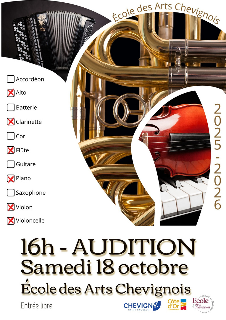 Samedi 25 octobre a eu lieu la première audition de l’année. Les élèves d’Alto, Clarinette, Flûte, Piano, Violon et Violoncelle se sont présentés devant un public, pour certains la première fois !